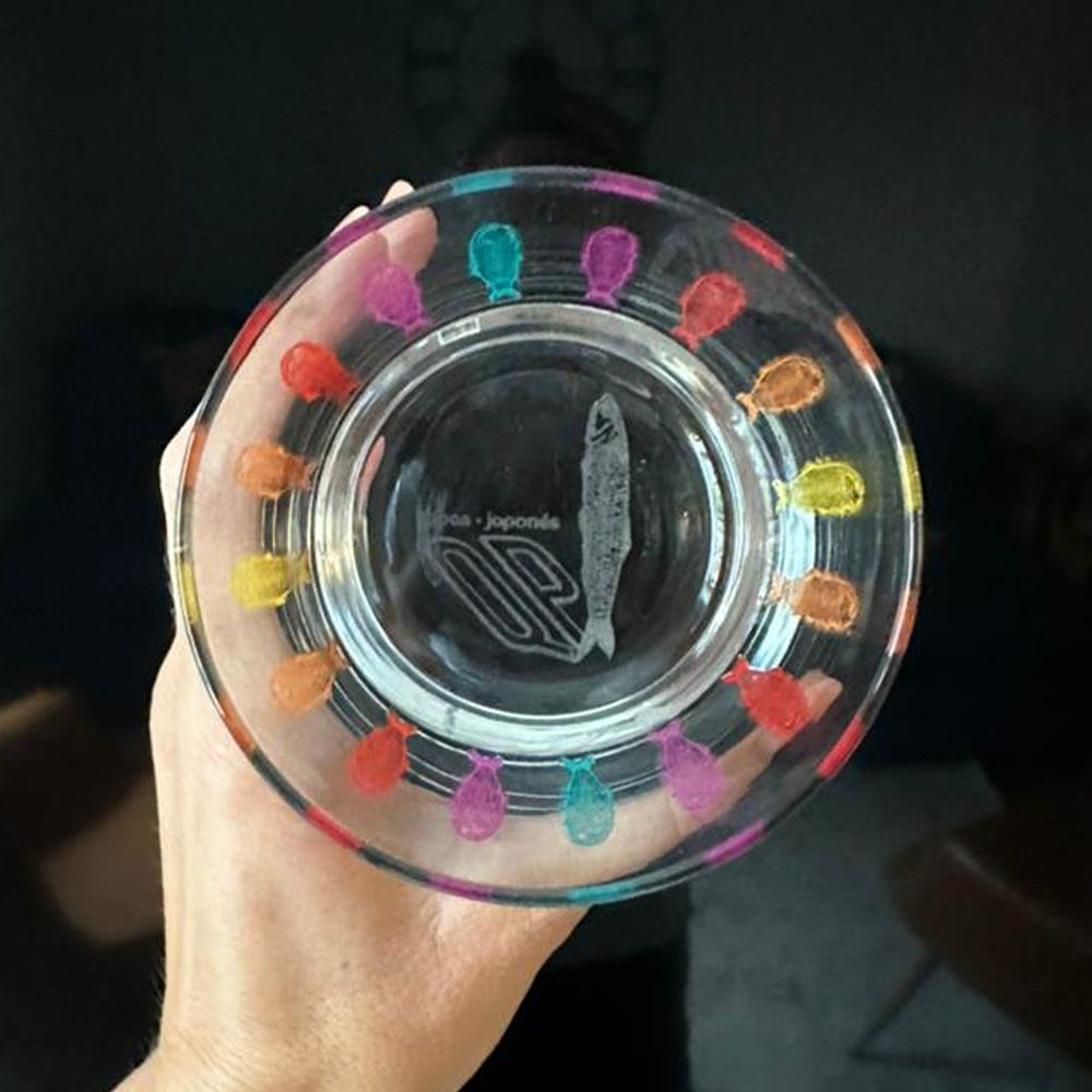 This glassware series targeted new audiences with modern design. We created and scaled the base pattern before applying permanent, waterproof, dishwasher-safe printing. Next steps include adding juice and tall glasses to complete the collection.